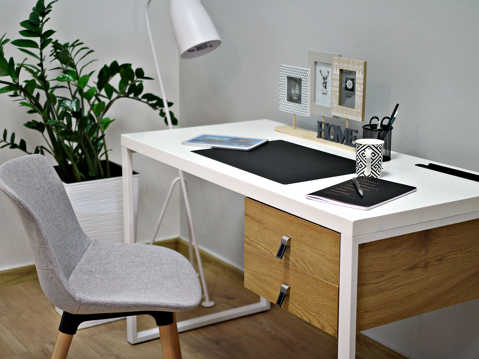 - Główny blat wykonany z płyty MDF lakierowanej w białym matowym kolorze