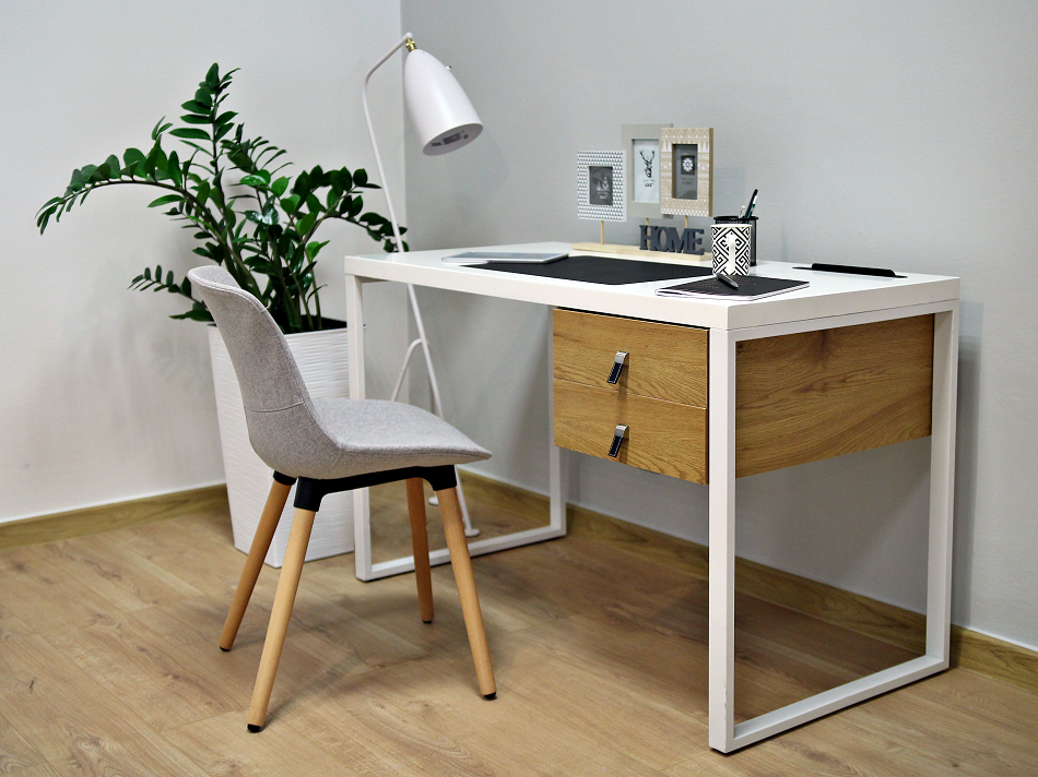- Nogi biurka wykonane z lakierowanego proszkowo metalu