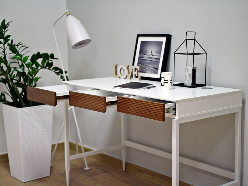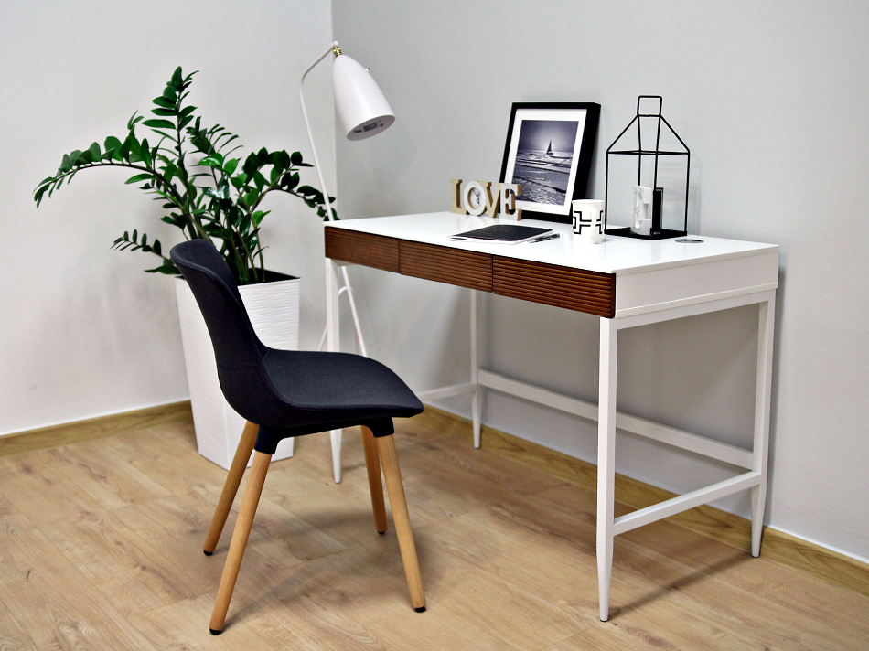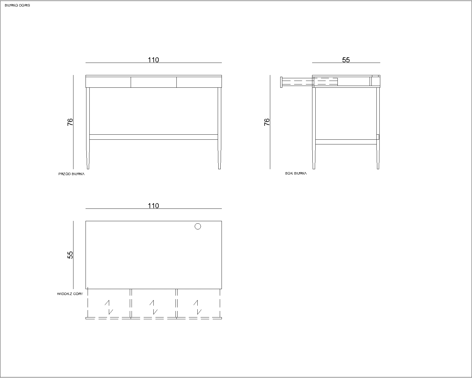- Nogi biurka wykonane z lakierowanego proszkowo metalu