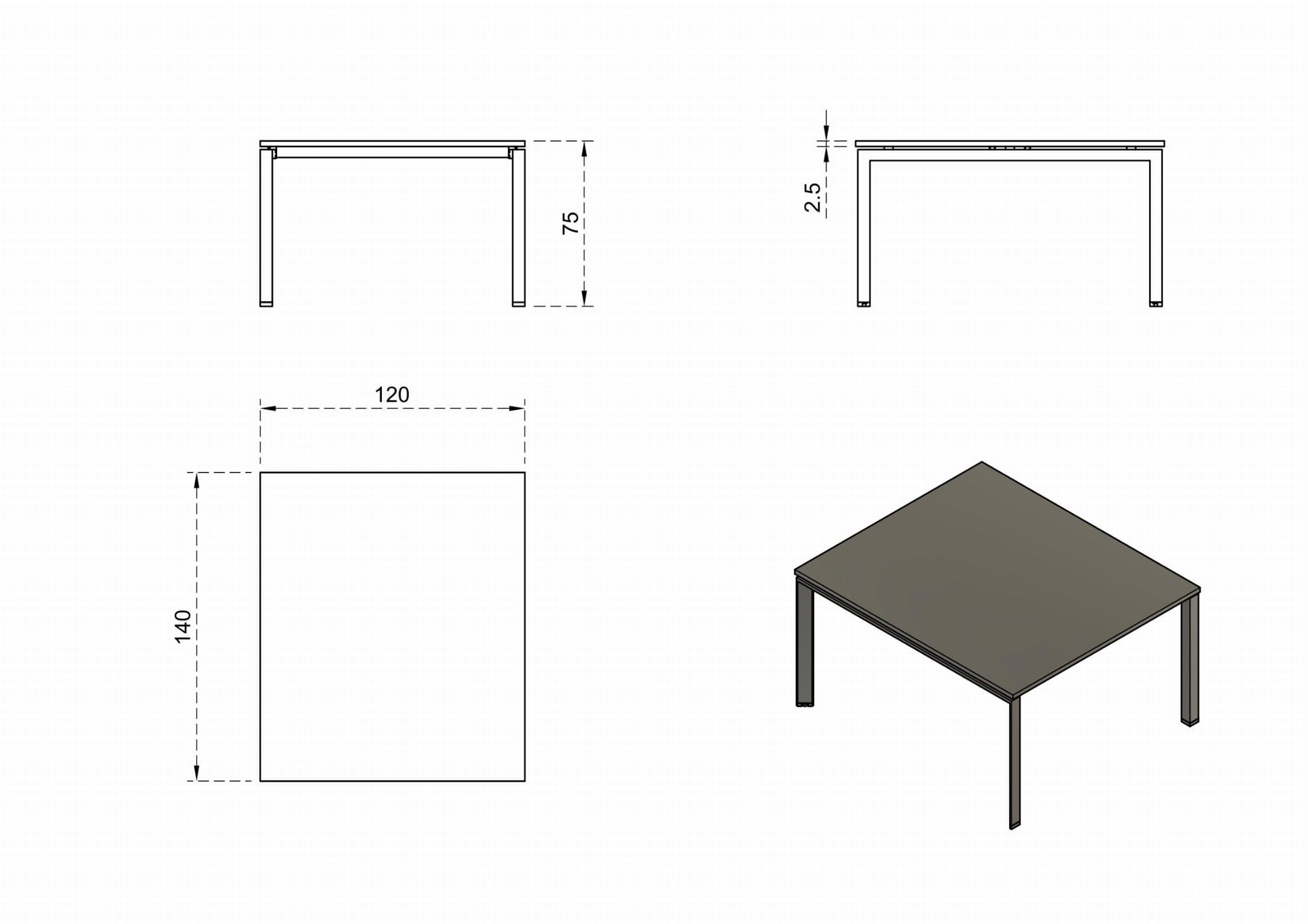 - Blat wykonany z płyty MFC (dwustronnie melaminowanej) o grubości 25 mm w kolorze białym RAL 9010 lub beżowym NC S 2005-Y50R