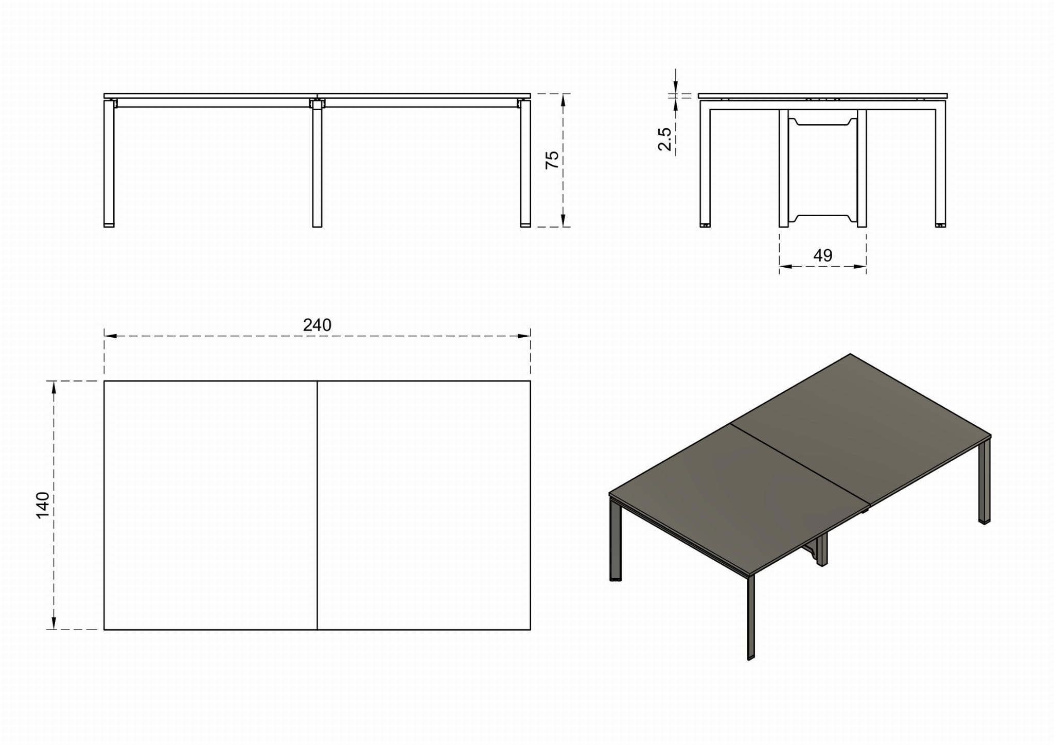 - Blat wykonany z płyty MFC (dwustronnie melaminowanej) o grubości 25 mm w kolorze białym RAL 9010 lub beżowym NC S 2005-Y50R