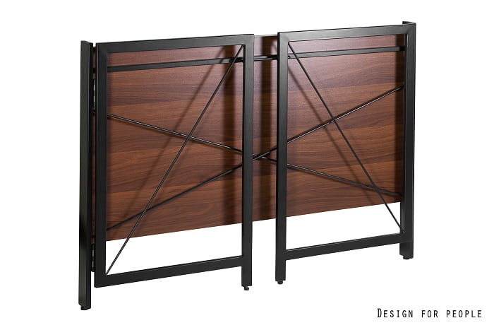 Dostępne dwie wersje kolorystyczne - czarny stelaż/walnut oraz czarny stelaż/golden teak
