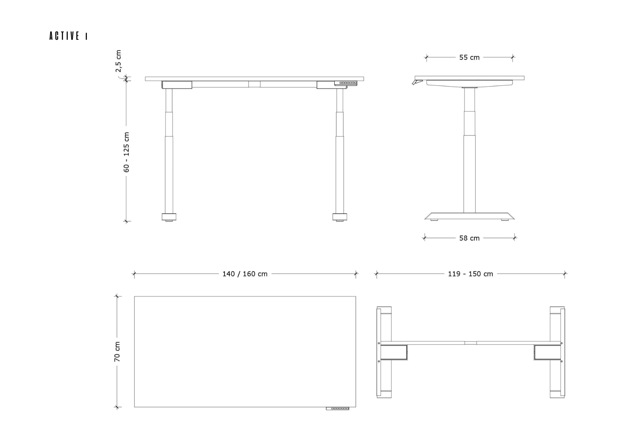 - Blat wykonany z płyty MFC (dwustronnie melaminowanej) o grubości 25 mm w kolorze białym NC S 0502-Y, beżowym NC S 2005-Y50R, walnut lub antracyt NC S 8000-N