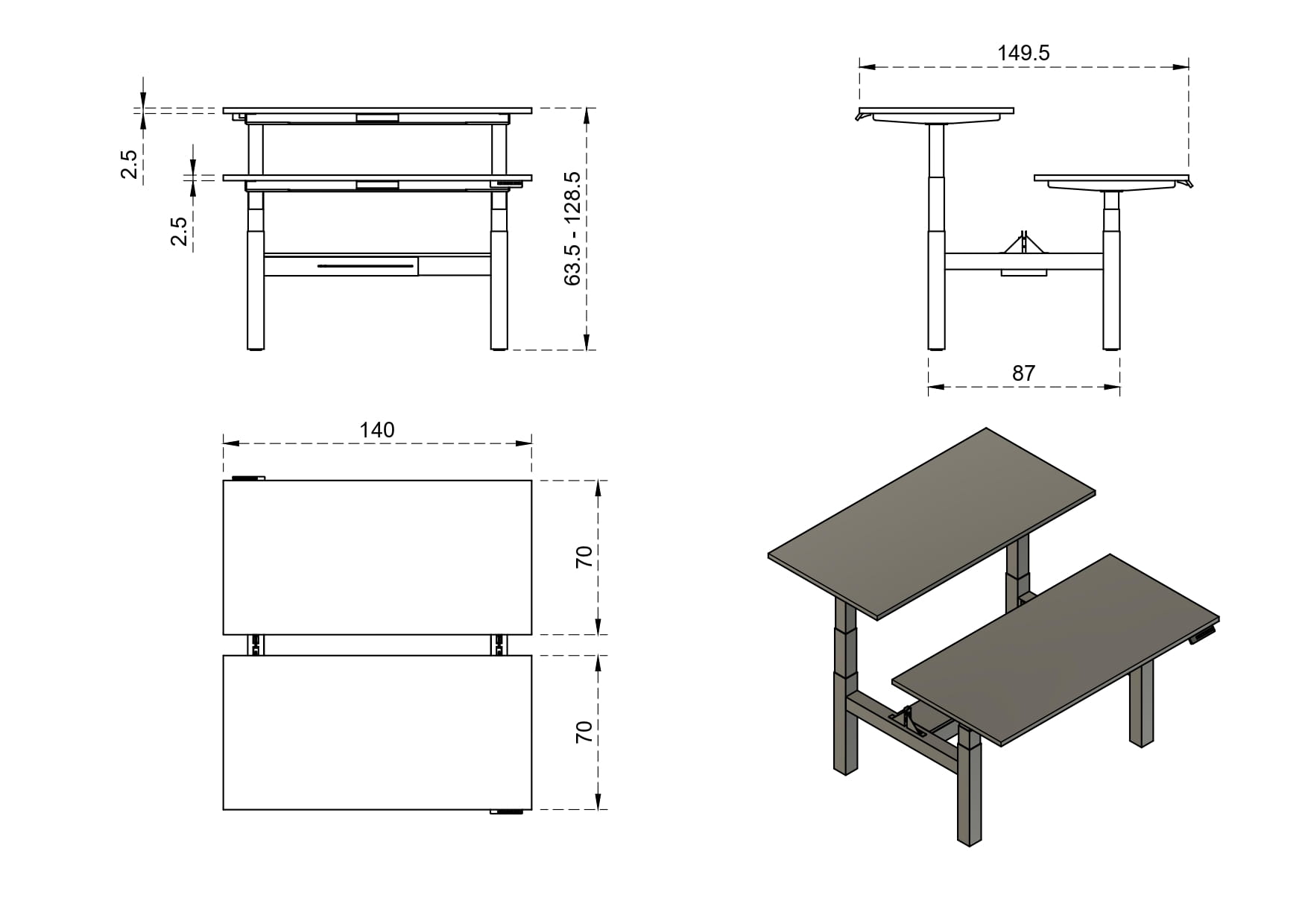 Biurko elektryczne Fighter Double 140x70