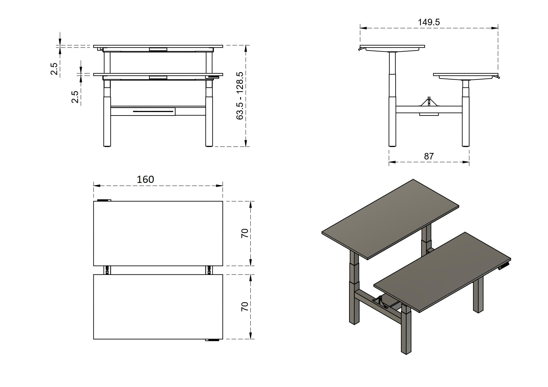 Biurko elektryczne Fighter Double 160x70