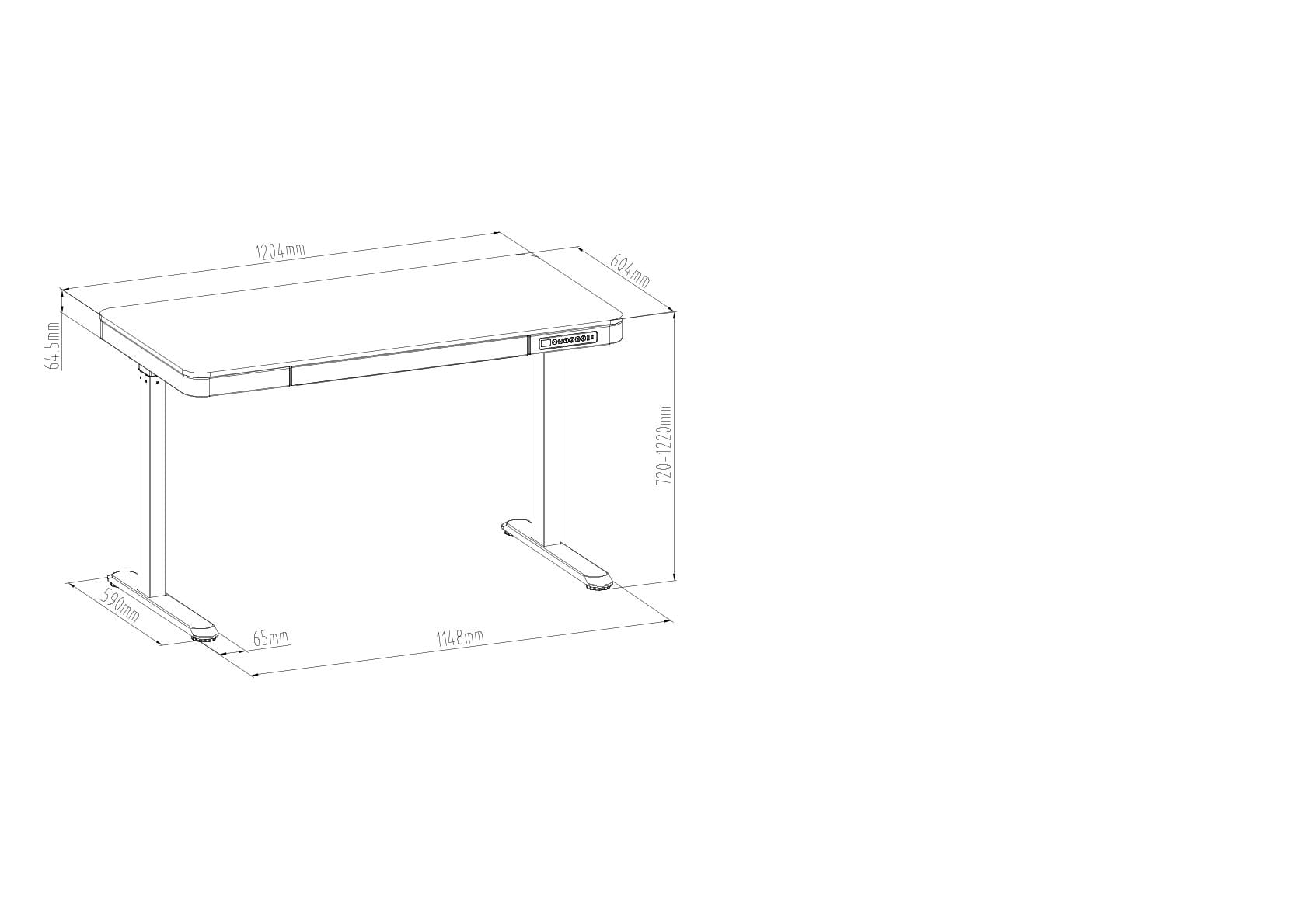 - Zakres wysokości stelaża 720-1220 mm