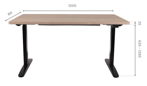 Mechanizm umożliwia płynną regulację wysokości biurka w zakresie od 635 mm do 1285 mm