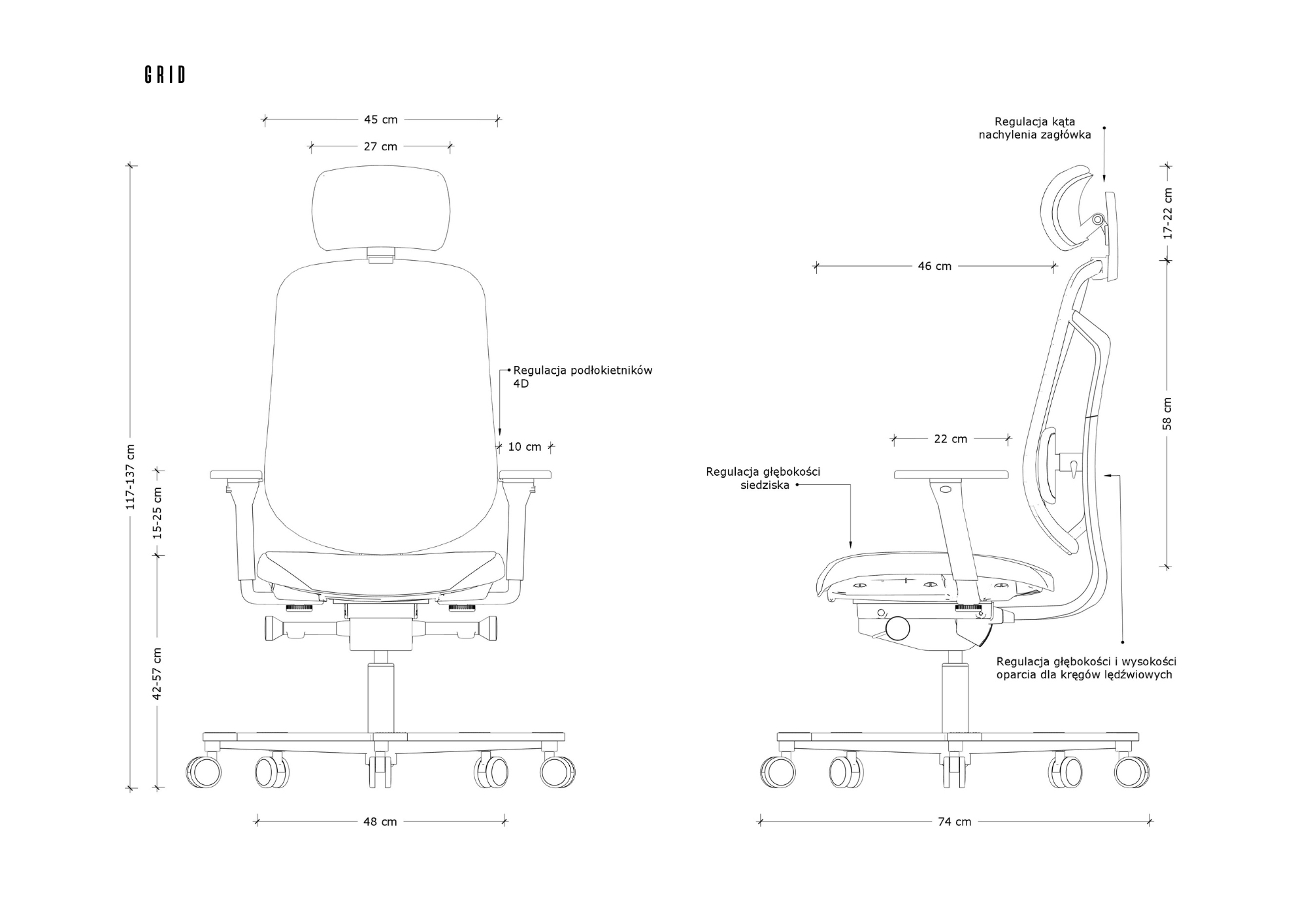 - Regulacja podłokietników 4D
