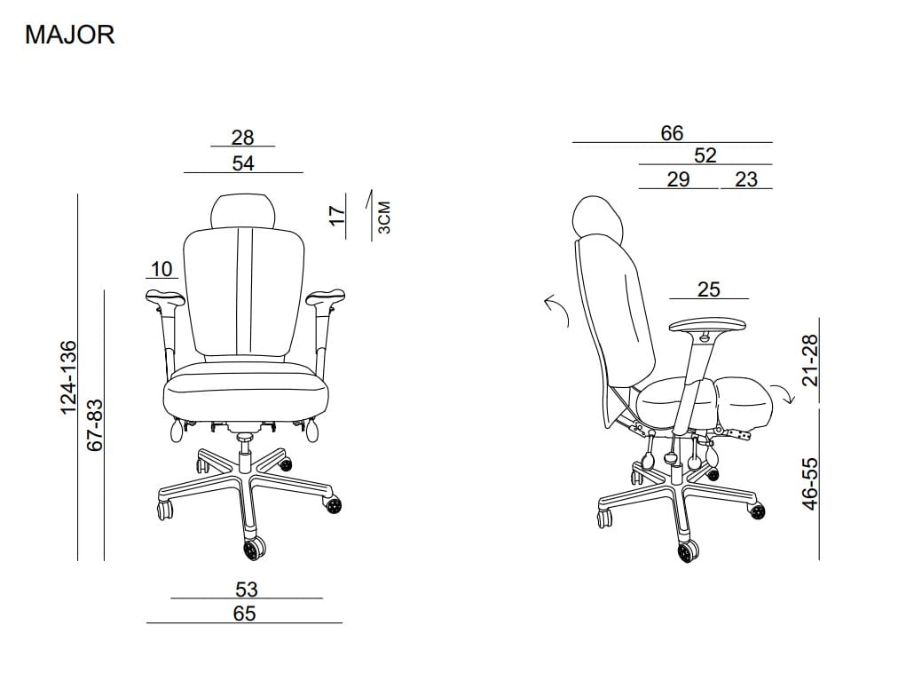 - Mechanizm wielofunkcyjny, pozwalający na niezależną regulację oparcia od siedziska lub swobodne odchylanie oparcia wraz z siedziskiem