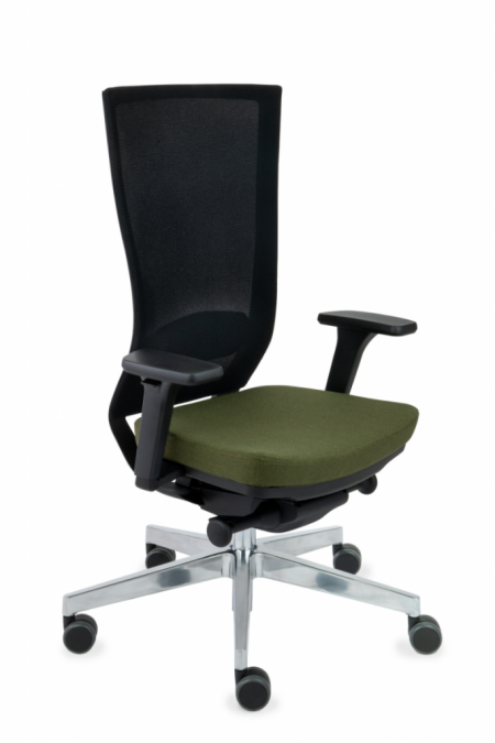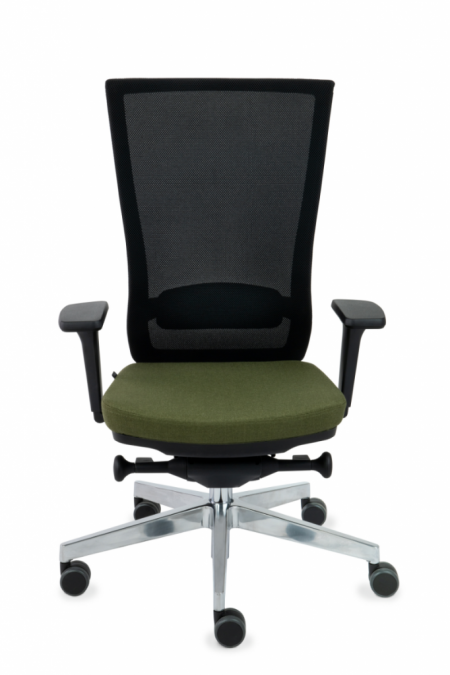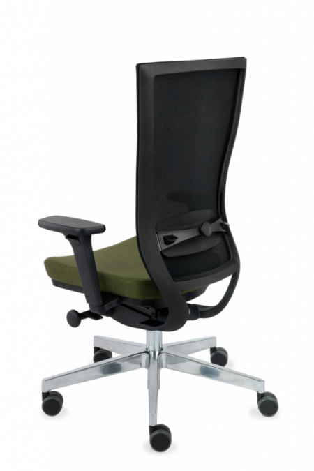 Fotel z siatkowym oparciem, które zapewnia bardzo dobrą cyrkulację powietrza, docenianą szczególnie latem, a także dobre dopasowanie do kształtów pleców. Regulowany profil lędźwiowy umożliwia dostosowanie odpowiedniej pozycji w zakresie głębokości i wysokości.