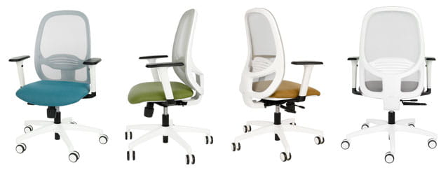 Cena podstawowa dla modelu NODI WS z mechanizmem Synchro plus SP2, podłokietnikiem R8 white, biała nylonowa podstawa, z tapicerką z podstawowej grupy cenowej.