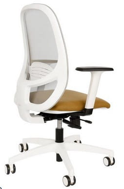 Siatkowe, przewiewne oparcie gwarantuje prawidłowe dopasowanie do kształtu pleców oraz stałą cyrkulację powietrza. Regulowana podpórka lędźwiowa gwarantuje indywidualne dopasowanie.