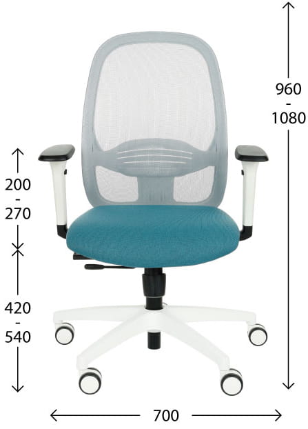 W standardzie krzesło wyposażone jest w podłokietniki z regulacją góra-dół w zakresie 70 mm. Umożliwia to odpowiednie dopasowanie do wzrostu Użytkownika, zapewniając w ten sposób ergonomiczne ułożenie przedramienia (90 stopni względem tułowia) odciążając w ten sposób mięśnie pleców podczas wielogodzinnej pracy.
