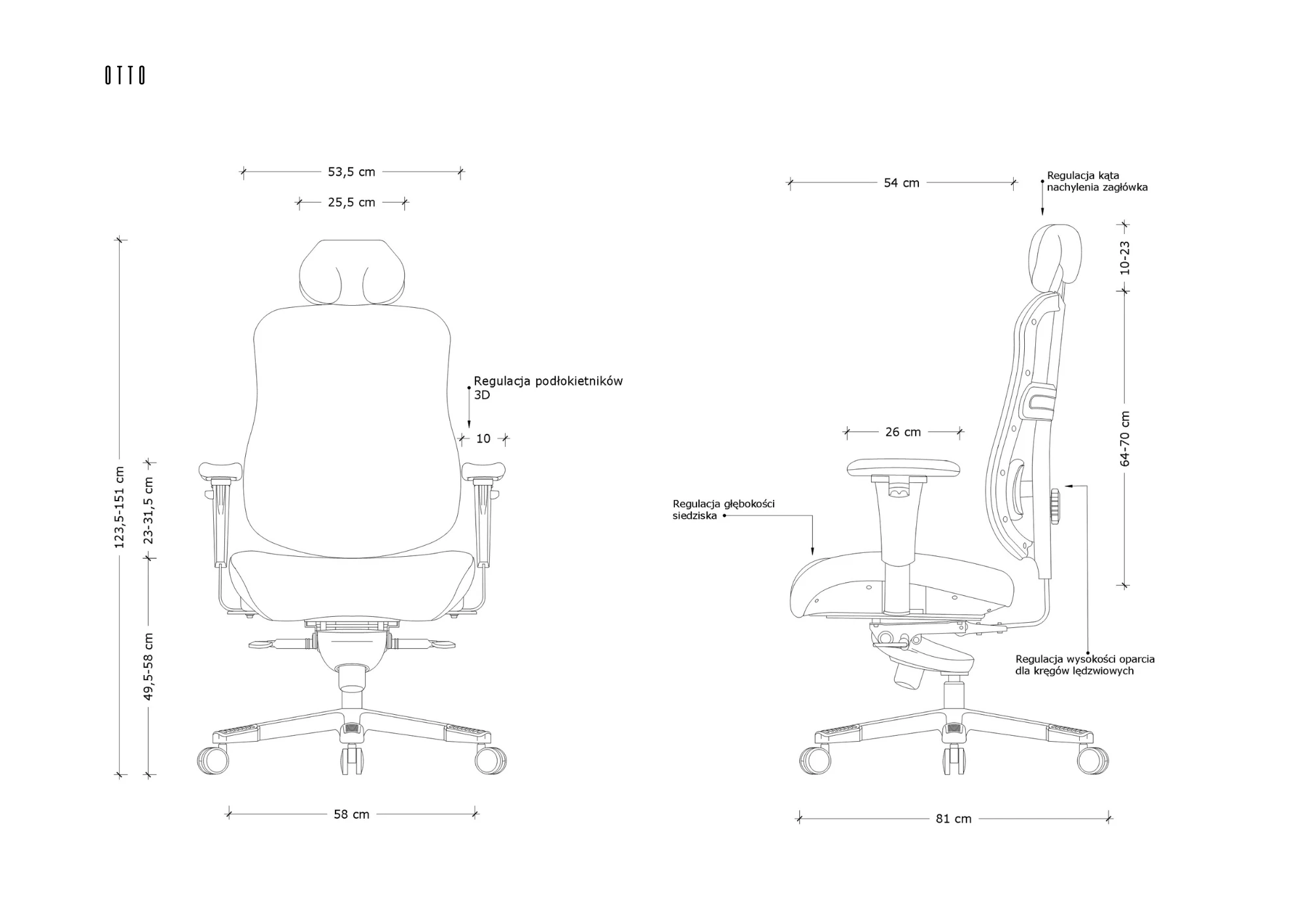 - Regulacja podłokietników 3D