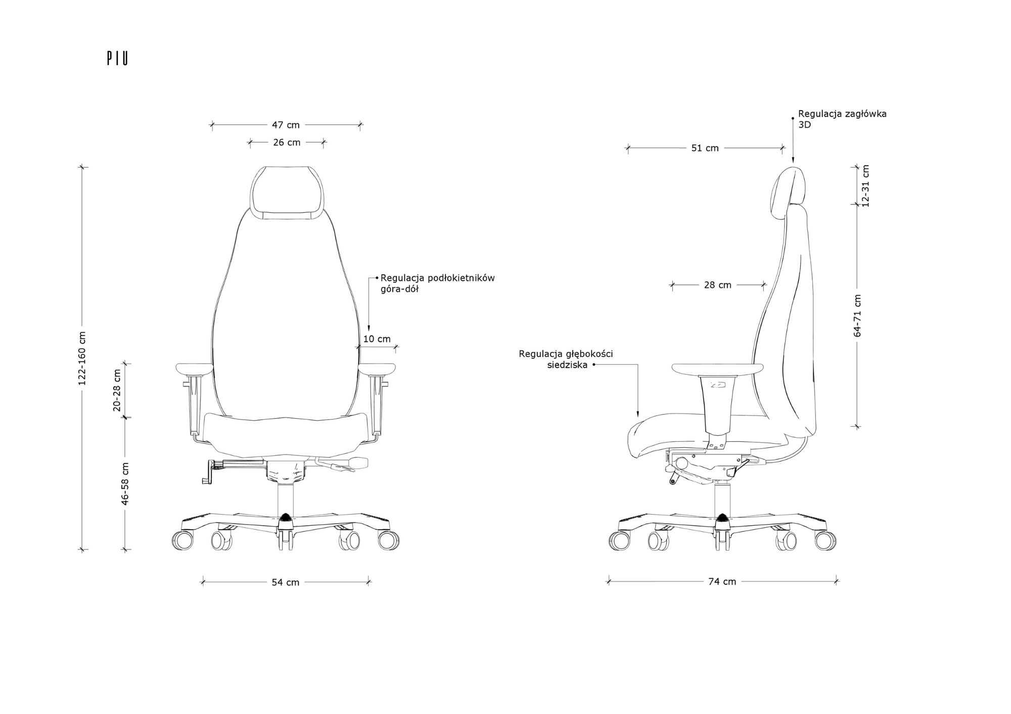- Regulacja podłokietników (góra-dół)