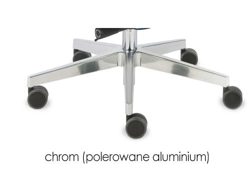 Lekka, z polerowanego aluminium podstawa jezdna, wyposażona jest w kółka o średnicy 60 mm, które są bezpieczne dla parkietów i paneli. Dobrze sprawdzą się także na dywanach.