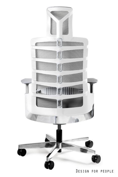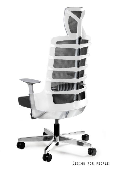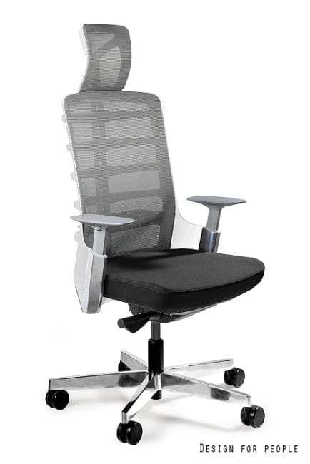 WHITE tworzywo białe, tapicerka: szara siatka i czarna tkanina