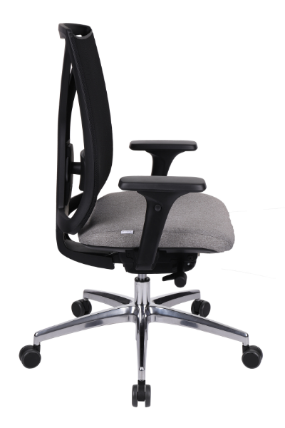 Valio BS wyróżnia się siatkowym oparciem, zapewniającym odpowiednią cyrkulację powietrza i dobre dopasowanie do kształtu pleców, a także regulowanym profilem lędźwiowym.