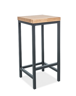 Stołek barowy, siedzisko: lite drewno dębowe, stelaż: metal, kolor: czarny.