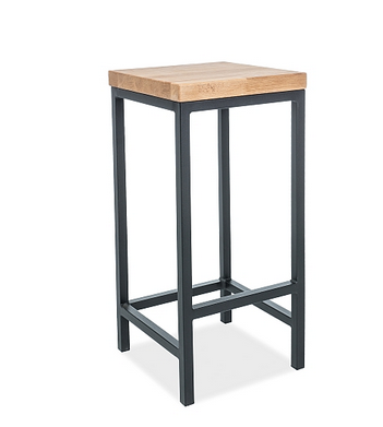 Stołek barowy, siedzisko: okleina naturalna, stelaż: metal, kolor: czarny.