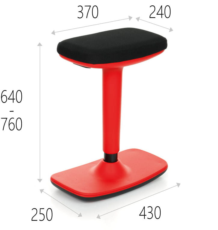 Podstawa hokera umożliwia swobodne kołysanie się na boki. Odpowiednio wyważona konstrukcja jest stabilna i podczas prawidłowego użytkowania zapewnia stabilność i zachowanie równowagi. Dodatkowo spód jest zabezpieczony antypoślizgowym tworzywem, które tworzy dodatkowo estetyczny wzór.