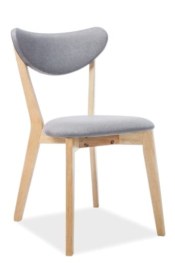 Krzesło, tkanina, kolor: szary, tap. 130, stelaż: drewno, kolor: dąb.