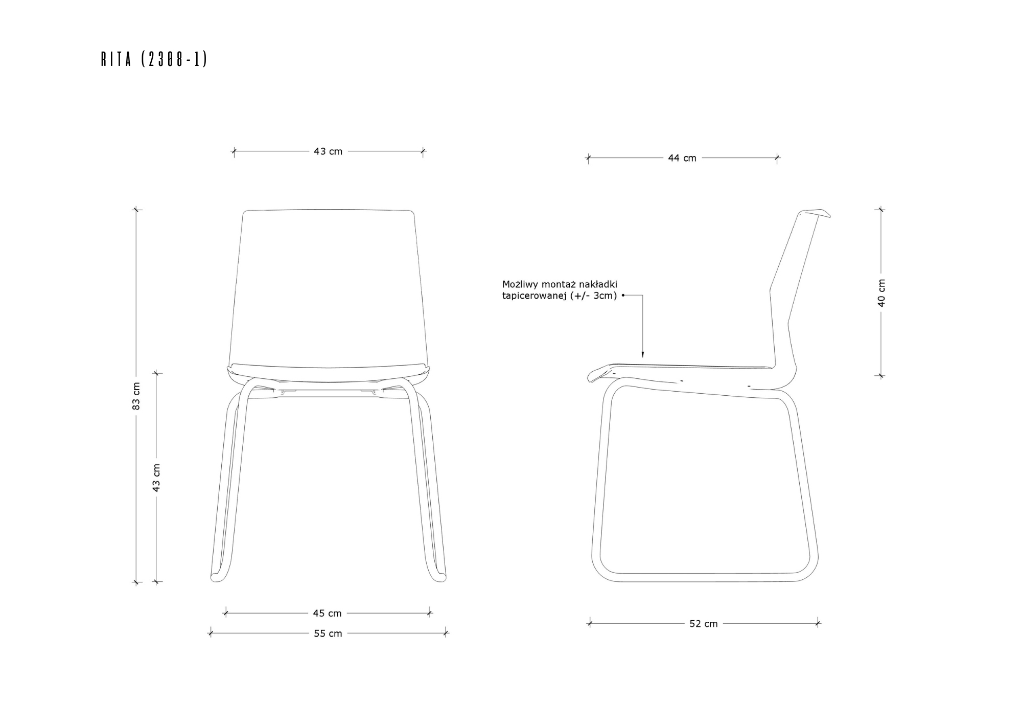 - Oparcie i siedzisko wykonane z wytrzymałego tworzywa PP stanowią integralną całość