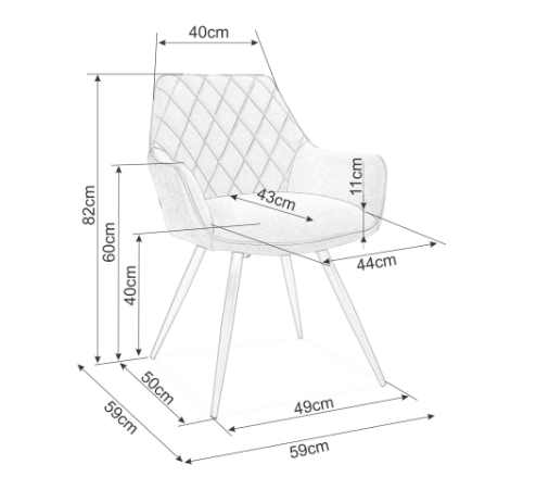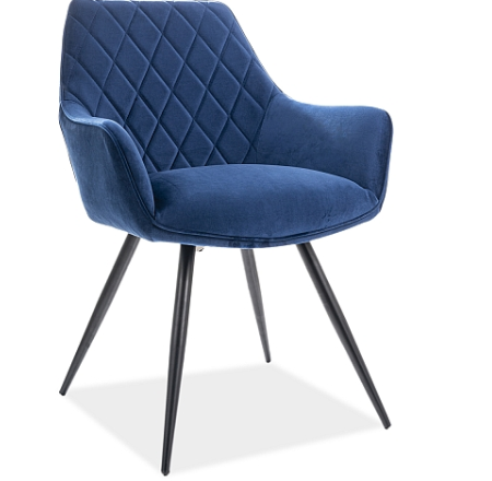 Krzesło, tkanina Bluvel 86 - granatowy, stelaż: metal, kolor: czarny mat. Wysokość podłokietników 12cm, wysokość oparcia 42cm.