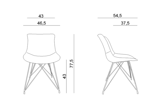 - Nogi krzesła wykonane z metalu lakierowanego na czarno