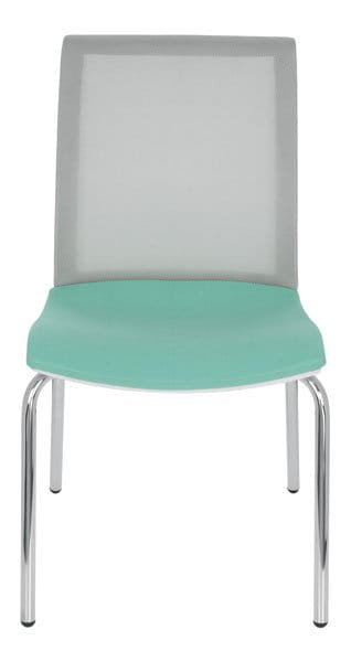 Cena obejmuje model Level 4L WS chrome na białym stelażu, siatkowe oparcie w kolorze szarym, tapicerowane siedzisko w materiale z podstawowej grupy tkanin, bez podłokietnika, chromowana podstawa na 4 nogach.