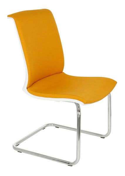 Cena obejmuje model Level V WT Chrome na białym stelażu, tapicerowane siedzisko i oparcie w materiale z podstawowej grupy tkanin, chromowana podstawa tzw. płozy bez podłokietnika.