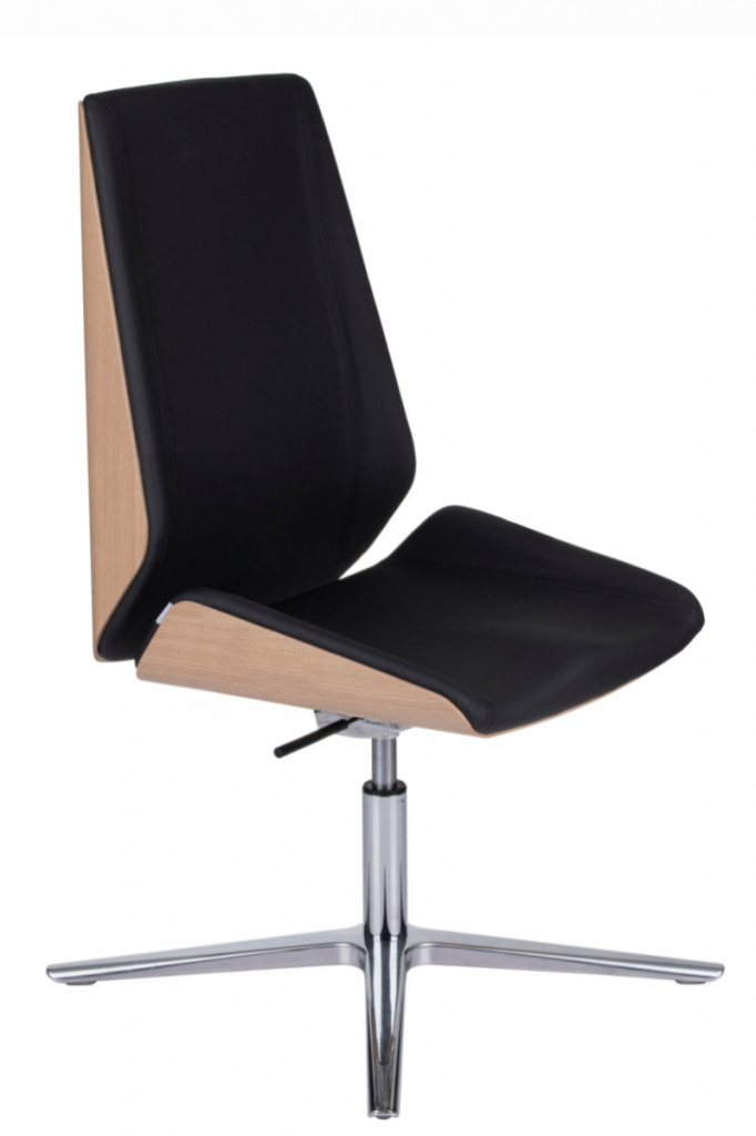 Fotel konferencyjny Moon Wood polskiej marki Grospol to ponadczasowy produkt, wyróżniający się precyzyjnym wykonaniem i najwyższą jakością zastosowanych materiałów. Drewniane wykończenie bryły w połączeniu z tapicerowanym i wyraźnie ergonomicznie profilowanym oparciem i siedziskiem, uzupełnione jest o aluminiową podstawę i podłokietniki. Całość tworzy spójną kompozycyjnie całość. Fotel Moon Wood wyposażony jest w precyzyjny mechanizm Tilt, umożliwiający swobodne kołysanie, a także regulację wysokości siedziska, łącząc ergonomię z wysokim komfortem użytkowania. Możliwość zastosowania fotela konferencyjnego Moon Wood z obecnym w ofercie Grospol fotelem biurowym Moon Wood utrzymanym w tej samej stylistyce, pozwala kompleksowo zaaranżować wnętrze. Szeroki wybór tkanin i wybarwień drewna umożliwia zaprojektowanie fotela dopasowanego do indywidualnych potrzeb.