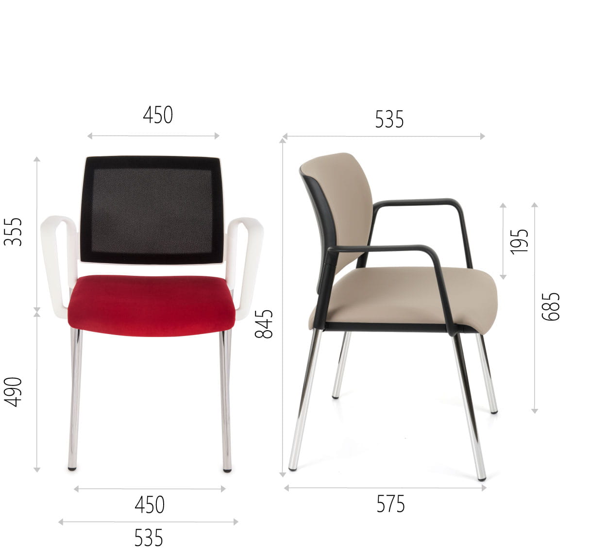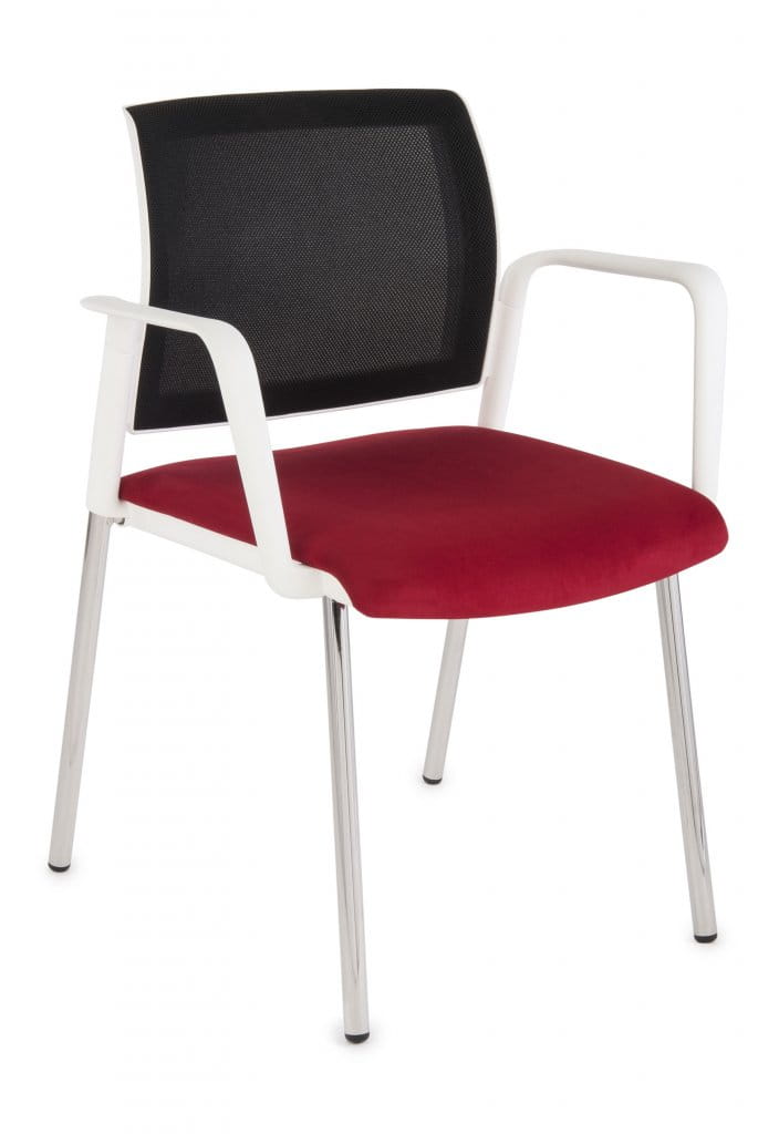 Cena obejmuje model Set Net Arm White Chrome na chromowanym stelażu - 4 nogi, siatkowe oparcie w kolorze czarnym, tapicerowane siedzisko w materiale z podstawowej grupy tkanin, podłokietniki, elementy plastikowe białe.