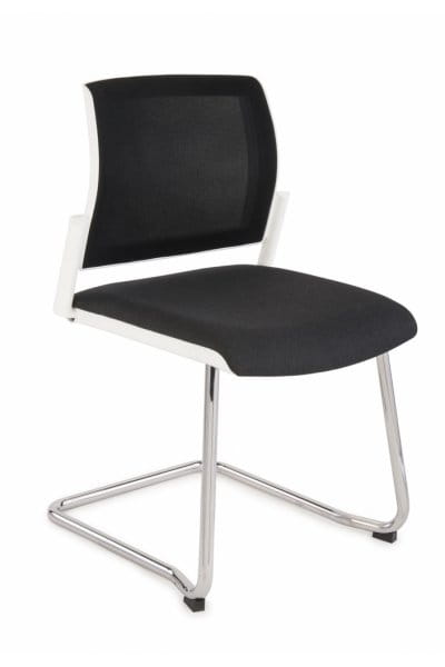 Cena obejmuje model Set V Net White Chrome na chromowanym stelażu - płozy, siatkowe oparcie w kolorze czarnym, tapicerowane siedzisko w materiale z podstawowej grupy tkanin, elementy plastikowe białe.