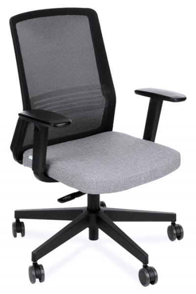 Wykonane z siatki w kolorze czarnym. Siatka zapewnia odpowiednią cyrkulację powietrza i dostosuje się do kształtu pleców użytkownika. Stały tapicerowany profil lędźwiowy zapewnia optymalne podparcie pleców.