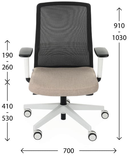 Wykonane z siatki w kolorze czarnym. Siatka zapewnia odpowiednią cyrkulację powietrza i dostosuje się do kształtu pleców użytkownika. Stały tapicerowany profil lędźwiowy zapewnia optymalne podparcie pleców.
