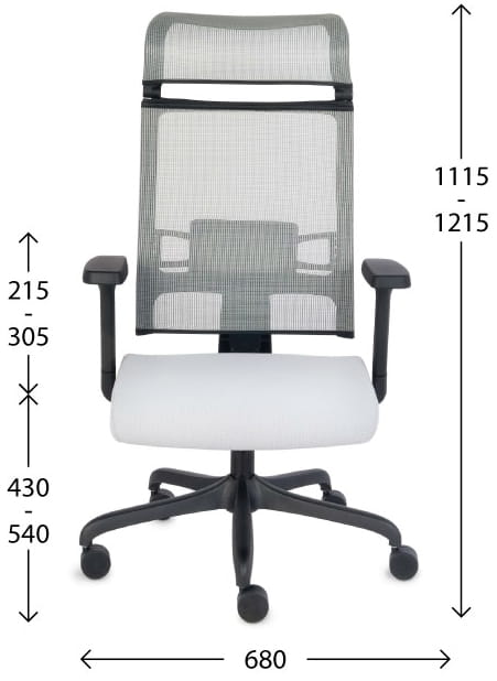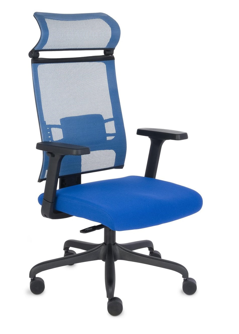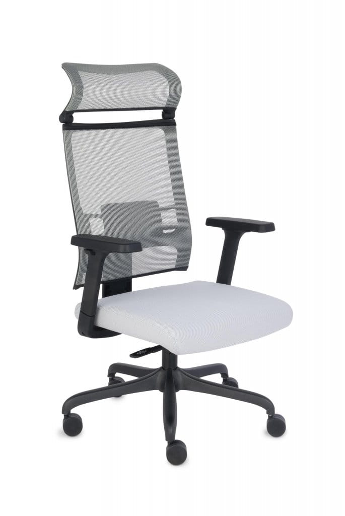 Oparcie : tapicerowane siatką, wyposażone w profil lędźwiowy o regulowanej wysokości oraz zagłówek o regulowanym kącie położenia. Siatkę wyróżnia wysoka odporność na ścieralność, która wynosi aż 100 tyś cykli Martindalea.