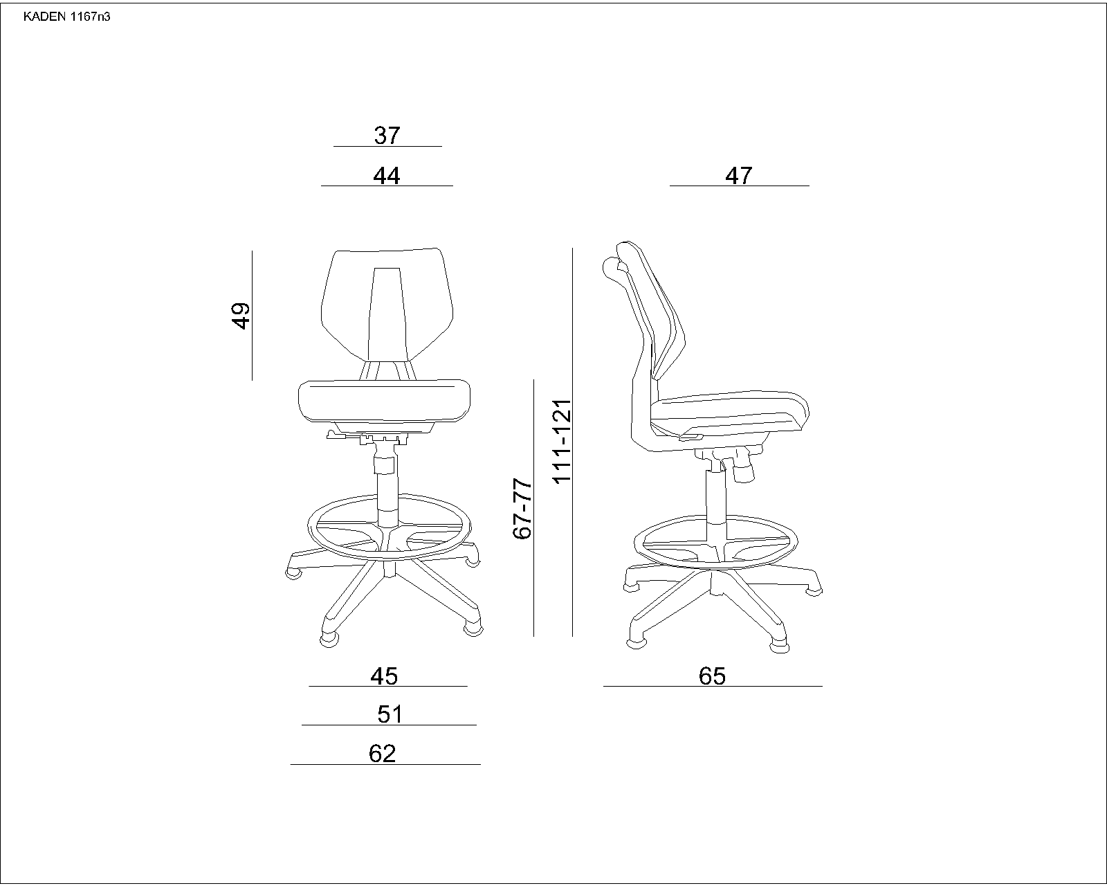 Krzesło specjalistyczne Kaden zapewnia pełną regulację wysokości siedziska. Przez producenta wyposażone zostało w komfortowe oparcie wykonane z trwałego tworzywa pokrytego powłoką z polipropylenu w szarym lub zielonym kolorze. Samo krzesło wykonane jest z tworzywa w białym kolorze, a siedzisko pokrywa eko skóra odporna na przetarcia i bardzo łatwa w czyszczeniu. Ciekawym rozwiązaniem jest wyposażenie mocowania oparcia w solidny uchwyt do przestawiania fotela. Uchwyt może także służyć jako wieszak. Dodatkowo krzesło medyczne posiada mechanizm balansujący 3D TILT. Podstawa jezdna krzesła medycznego Kaden wykonana jest z mocnego tworzywa (nylon) i wyposażona w stopki. Regulację wysokości zapewnia metalowy, chromowany podnóżek. Krzesło medyczne znosi wysokie obciążenie do 130 kg.