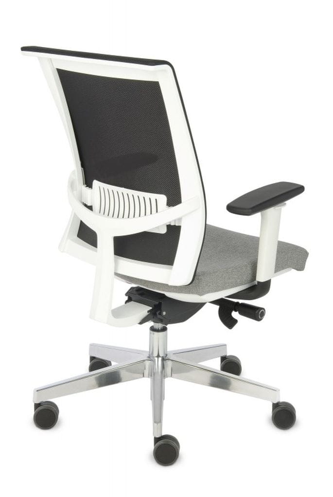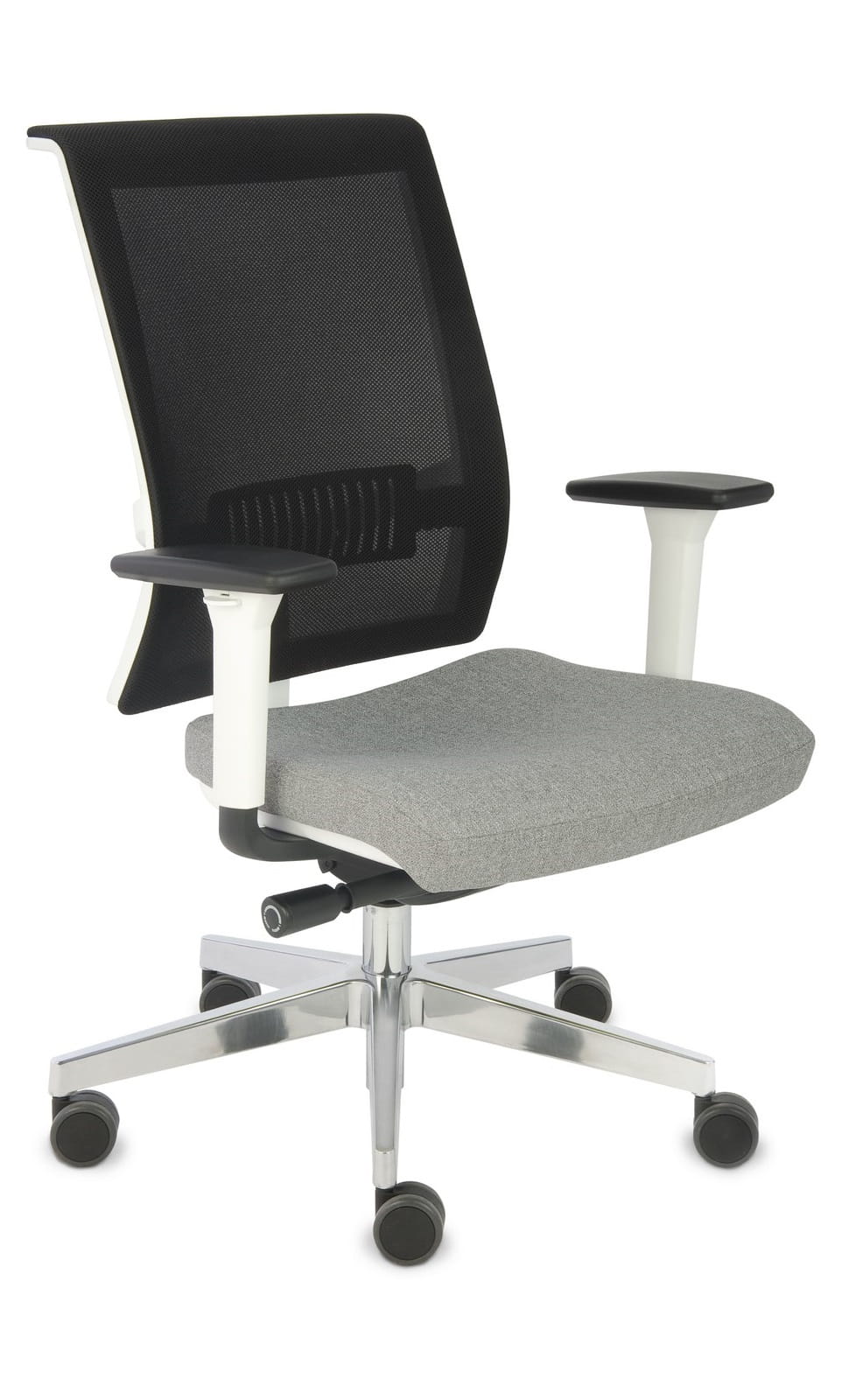 Oparcie : o stałej wysokości, tapicerowane oddychającą trudnozapalną siatką Runner o wysokiej odporności na ścieralność (70 tyś cykli Martindalea). Wyposażone w podpórkę lędźwiową o regulowanej wysokości. Symbol BS oznacza czarną ramę oparcia oraz opisaną już siatkę tapicerską. W przypadku zamówień kontraktowych istnieje możliwość wykonania oparcia w innym kolorze siatki.