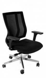 o stałej wysokości, tapicerowane oddychającą trudnopalną siatką Runner o wysokiej odporności na ścieralność (70 tyś cykli Martindalea). Wyposażone w podpórkę lędźwiową o regulowanej wysokości. Symbol BS oznacza czarną ramę oparcia oraz opisaną już siatkę tapicerską.