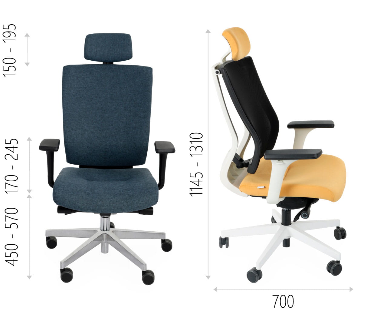 o stałej wysokości, tapicerowane oddychającą trudnozapalną siatką Runner o wysokiej odporności na ścieralność (70 tyś cykli Martindalea). Wyposażone w podpórkę lędźwiową o regulowanej wysokości. Symbol WS oznacza białą ramę oparcia oraz opisaną już siatkę tapicerską.