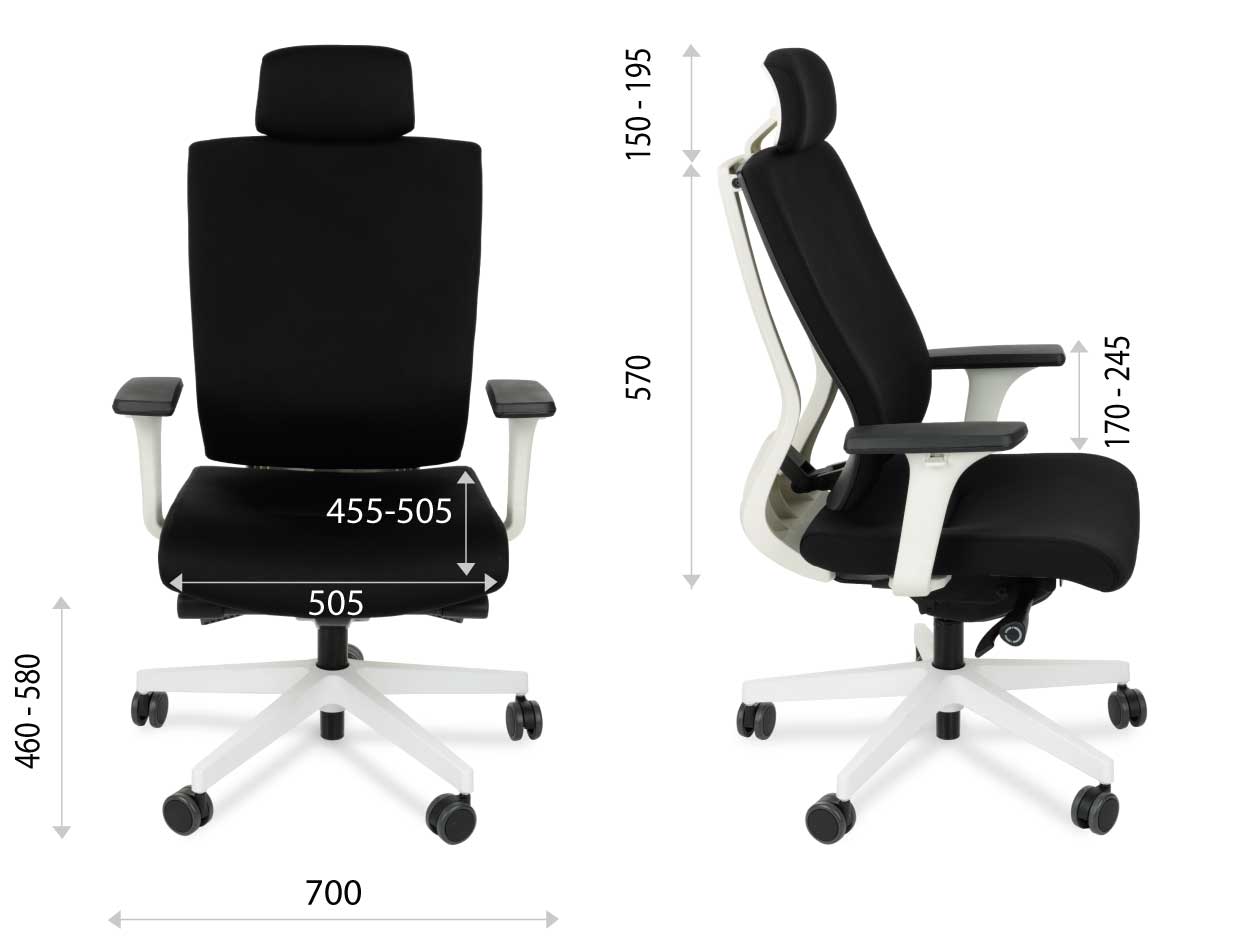 Siedzisko: pianka wyściełająca produkowana jest w technologii wylewania, co znacznie zwiększa jej trwałość i odpowiednią sprężystość nawet po wielu latach. Gęstość pianki to ok. 69 kg/m3. Regulacja głębokości siedziska (odległości od oparcia) pozwoli skorzystać z funkcji oparcia i wyeliminuje ucisk na uda bez względu na wzrost Użytkownika.