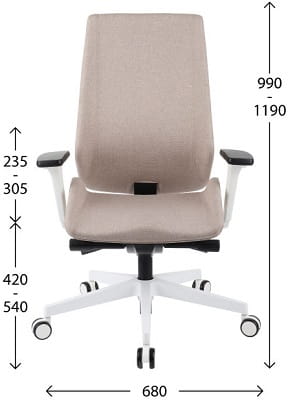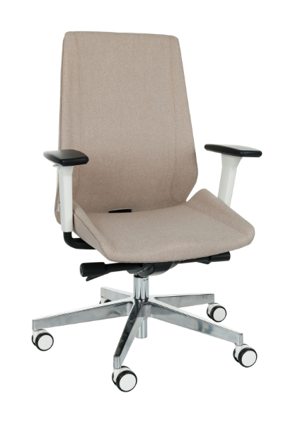Oparcie : Obustronnie tapicerowane, wyraźnie profilowane także w części lędźwiowej. Posiada regulację wysokości dostępną bez konieczności wstawania z krzesła. Zbudowane ze sklejki zalanej pianką poliuretanową w technologii wtrysku.