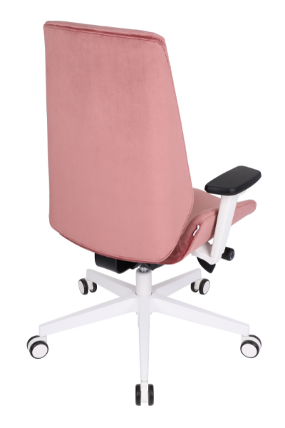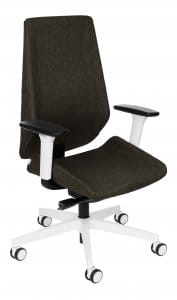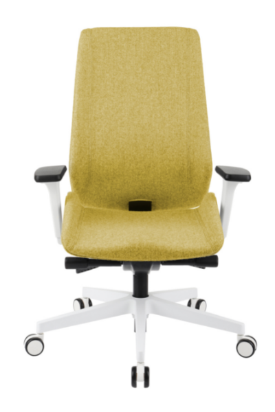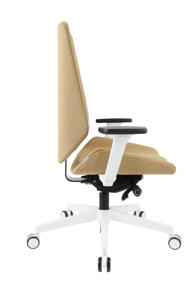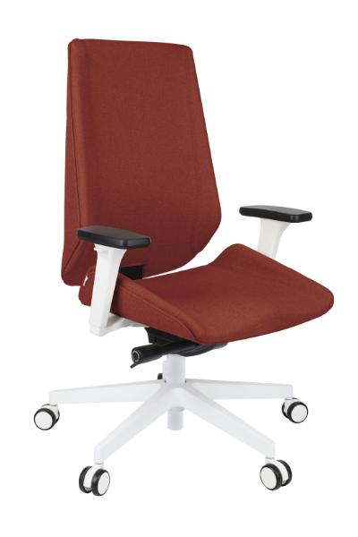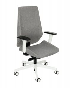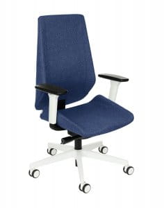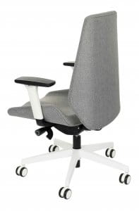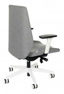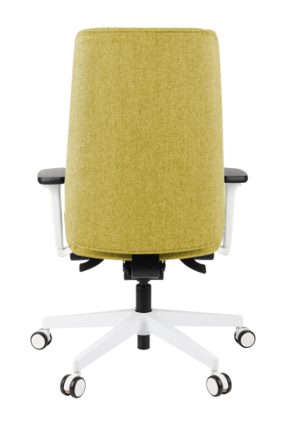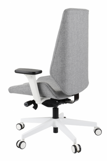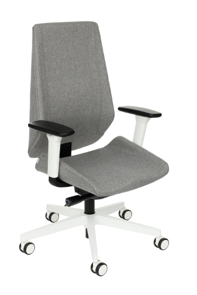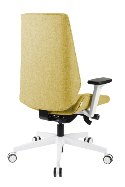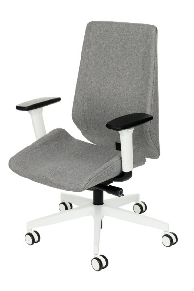 Oparcie : Obustronnie tapicerowane, wyraźnie profilowane także w części lędźwiowej. Posiada regulację wysokości dostępną bez konieczności wstawania z krzesła. Zbudowane ze sklejki zalanej pianką poliuretanową w technologii wtrysku.