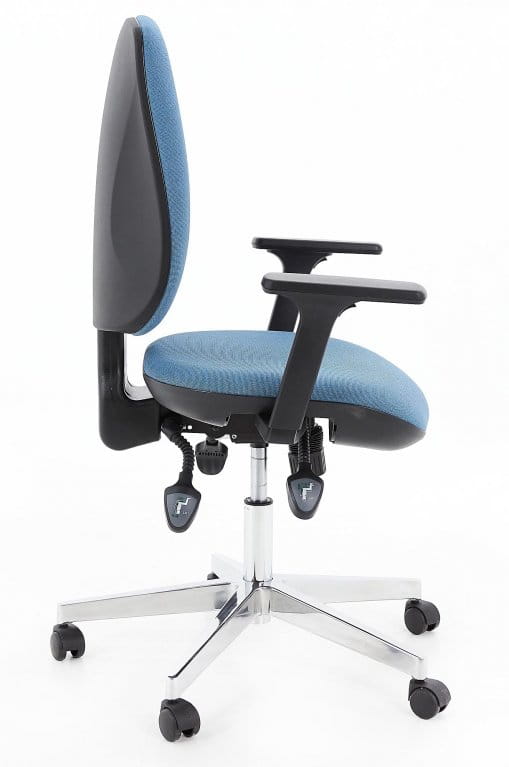 - Szczególnie ważny jest ruch oparcia który pozwala na ciągłe podparcie pleców Użytkownika podczas pracy. Odpowiednio wybrany kąt siedziska uwolni Państwa od drętwienia nóg podczas długiej pracy,