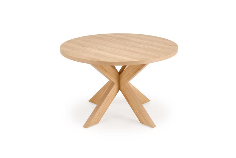Stół Morus to elegancki i funkcjonalny mebel, który doskonale sprawdzi się w nowoczesnych oraz klasycznych wnętrzach. Jego okrągły blat wykonany jest z MDF-u okleinowanego melaminą, co zapewnia trwałość i odporność na codzienne użytkowanie. Naturalny kolor blatu podkreśla ciepły, minimalistyczny charakter stołu, nadając mu uniwersalny wygląd pasujący do różnych aranżacji.