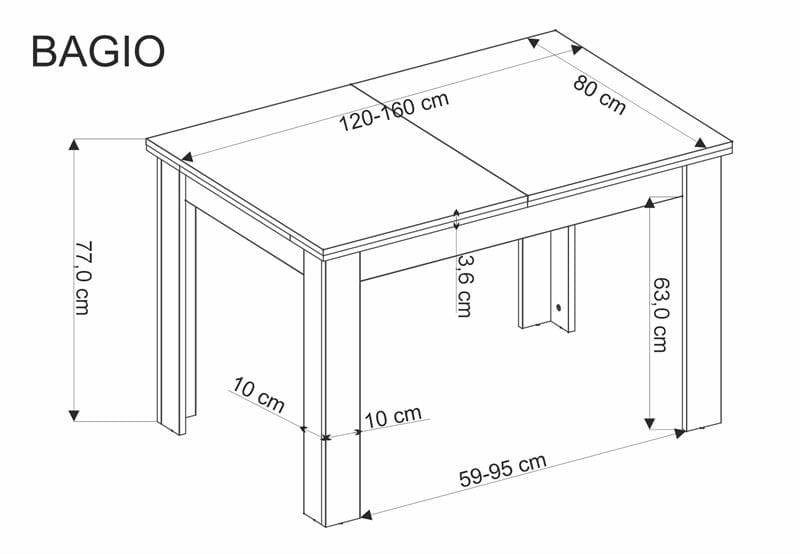 wymiary: 120-160/80/77/95 cm;