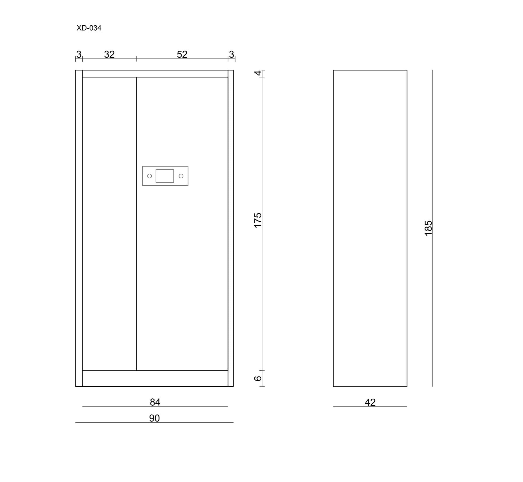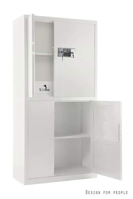 - Drzwi szafki wyposażone w zamek elektryczny, dodatkowo zamykany na klucz (w komplecie 2 klucze)