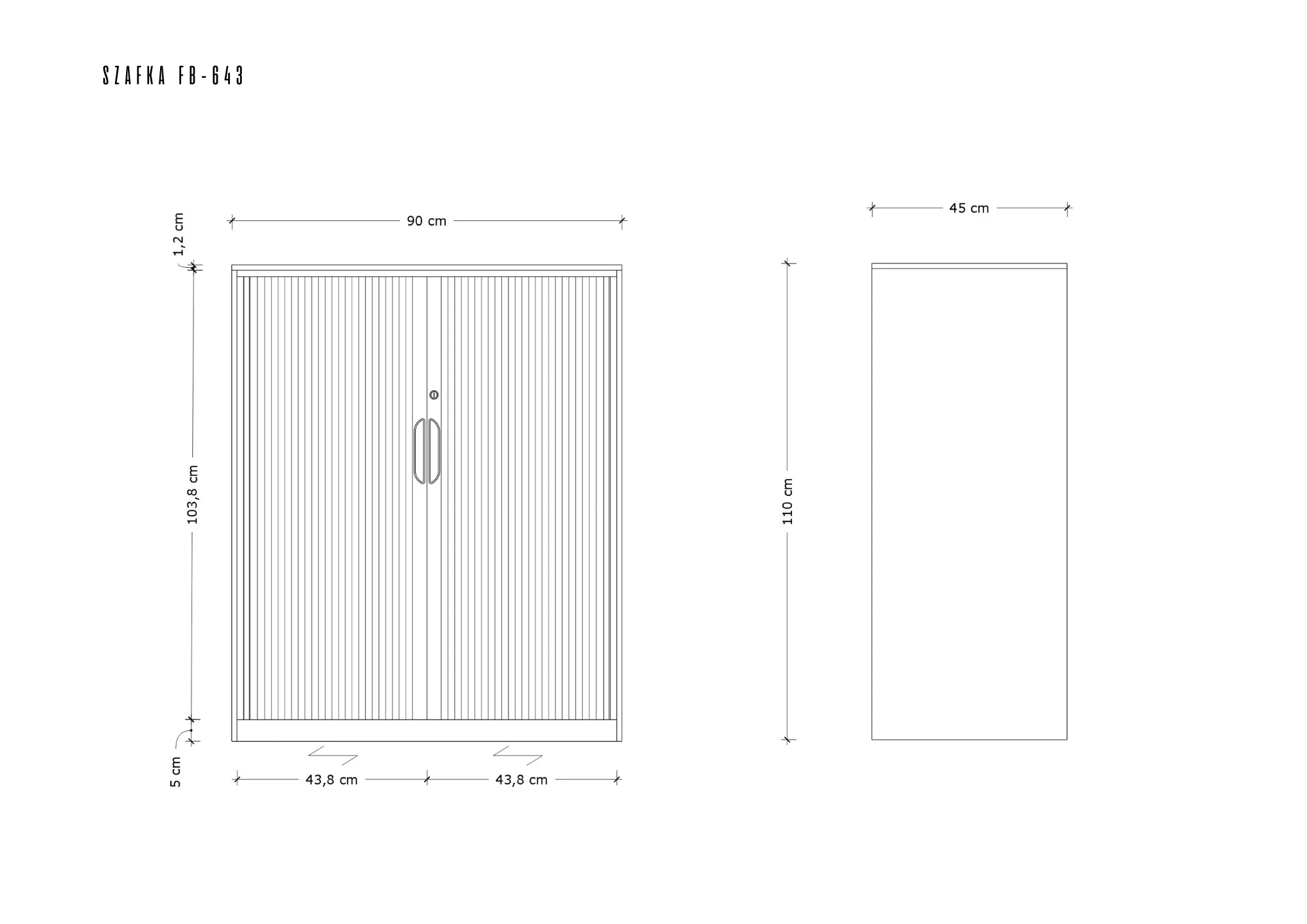 - Szafka wyposażona w drzwi żaluzjowe wykonane z tworzywa ABS z zamkiem