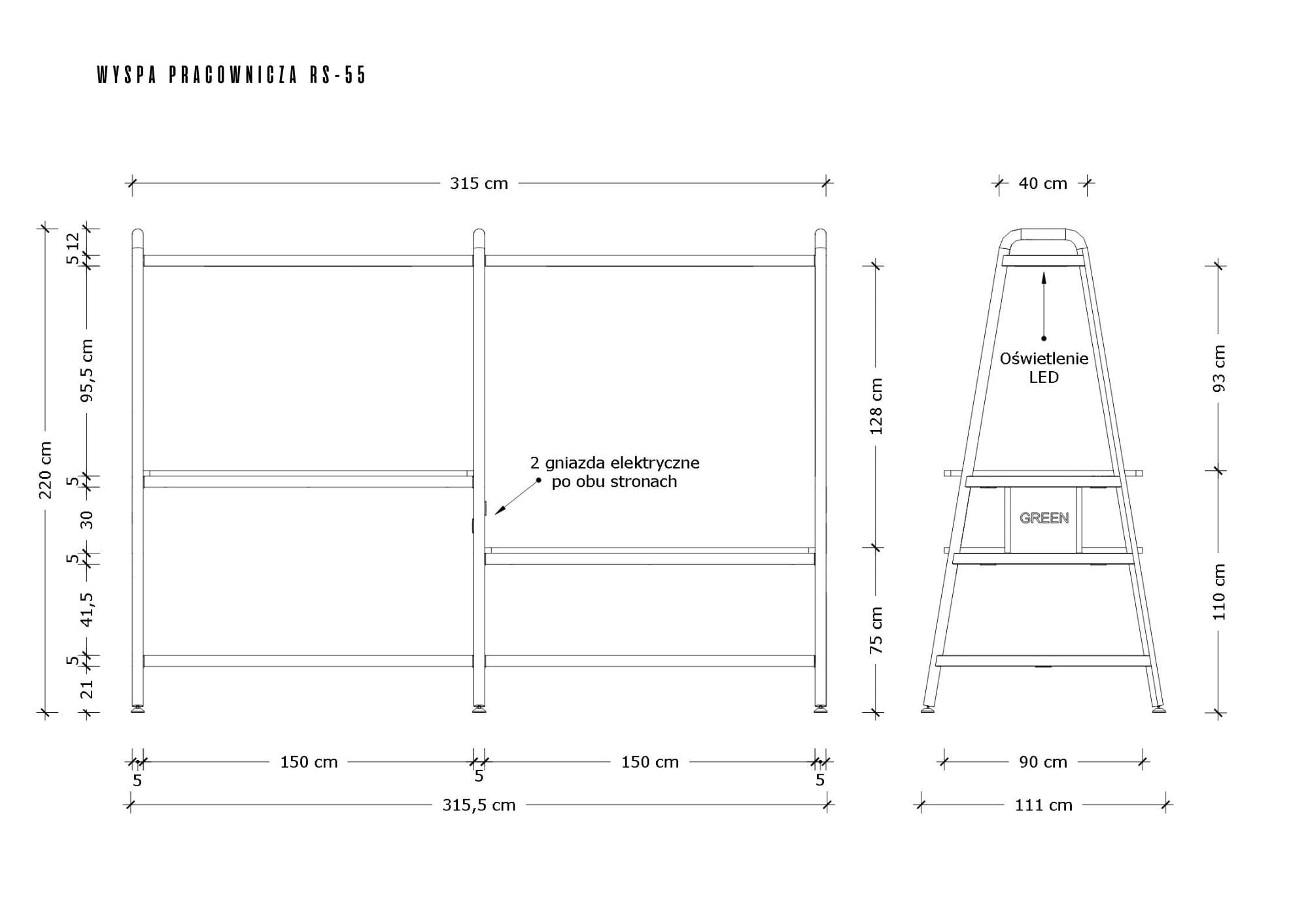 - Stelaż wykonany ze stali lakierowanego proszkowo